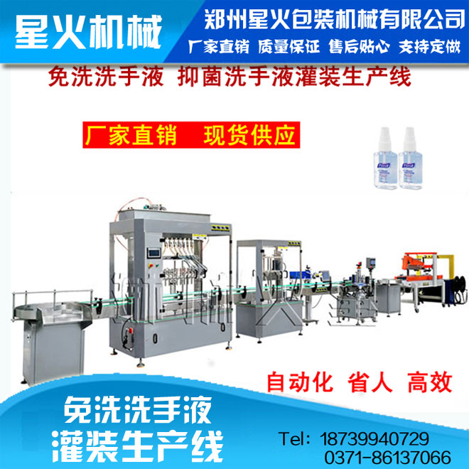 星火全自动免洗洗手液灌装设备免洗洗手液灌装生产线展示
