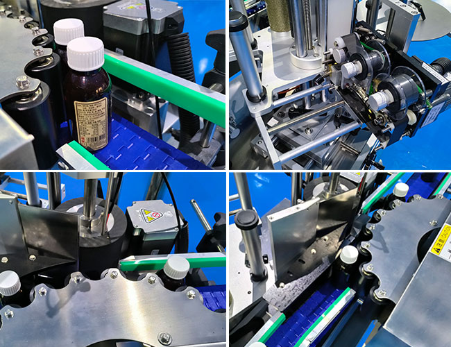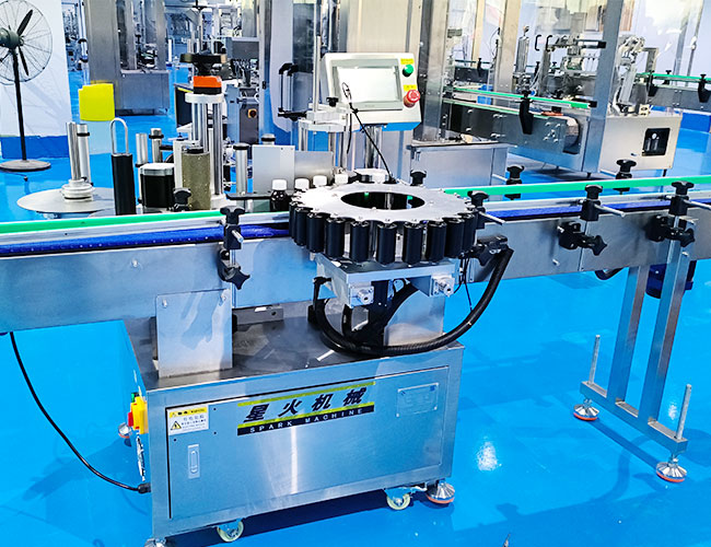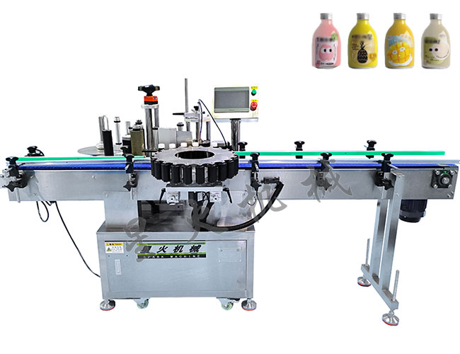 在正式开启工作之前,操作人员将空的瓶子放在进瓶转盘内,进瓶料盘是与输送带进行链接的,需要进入贴标工作时,在显示屏幕内进行瓶径和标签长度进行参数规格的预设,随后按下启动按钮,升降轮将会自动到位,当按下启动按钮时,圆型立式自动贴标设备将开启自动连续式贴标、定位、连续式输出的操作工序,一旦出现缺瓶、少瓶时,可自动报警停机。